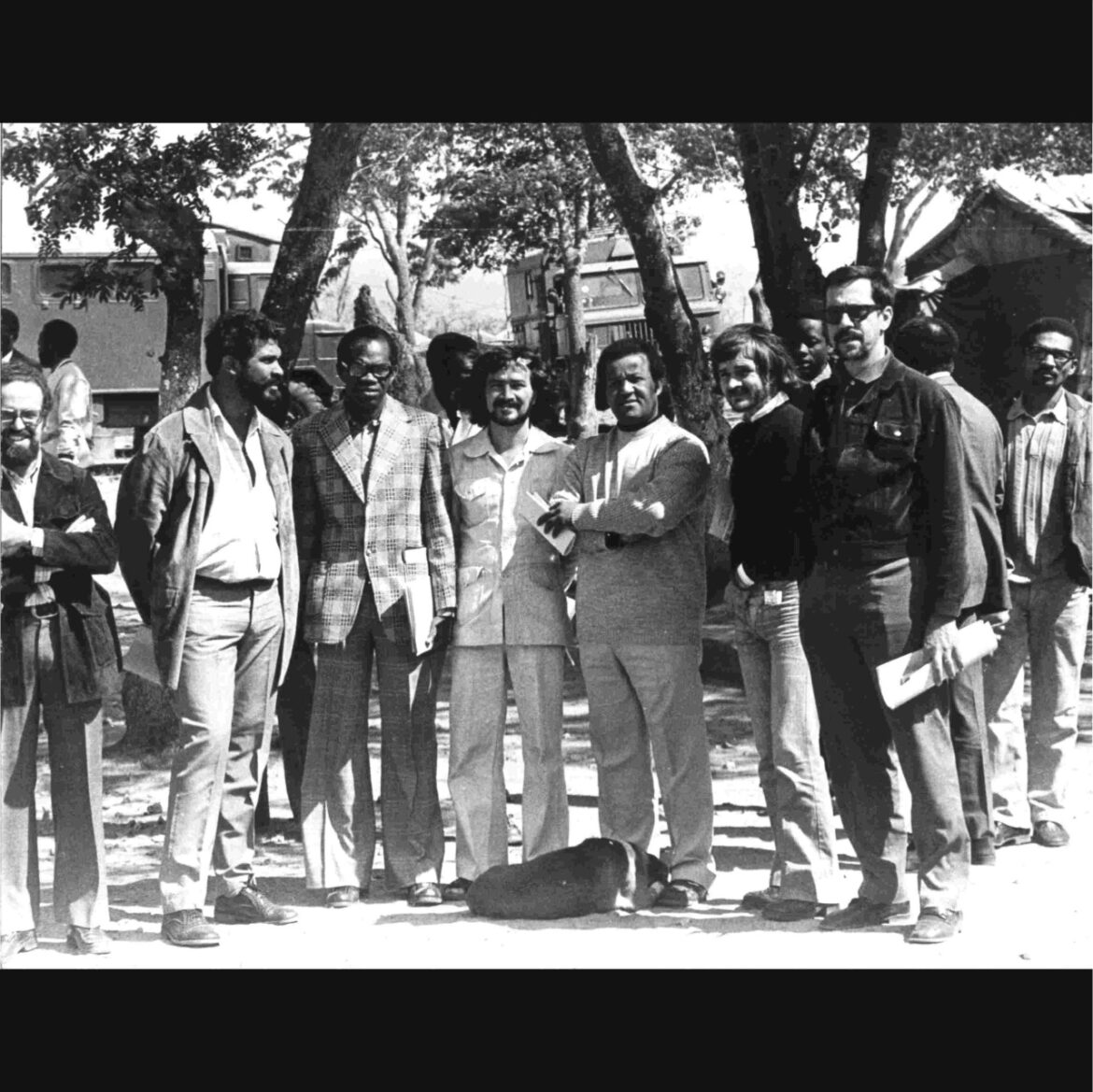 À esquerda, ao fundo, David Bernardo Silas, conversando com Binda. À direita, de costas na fotografia, o mais velho Silas e Onambwé.