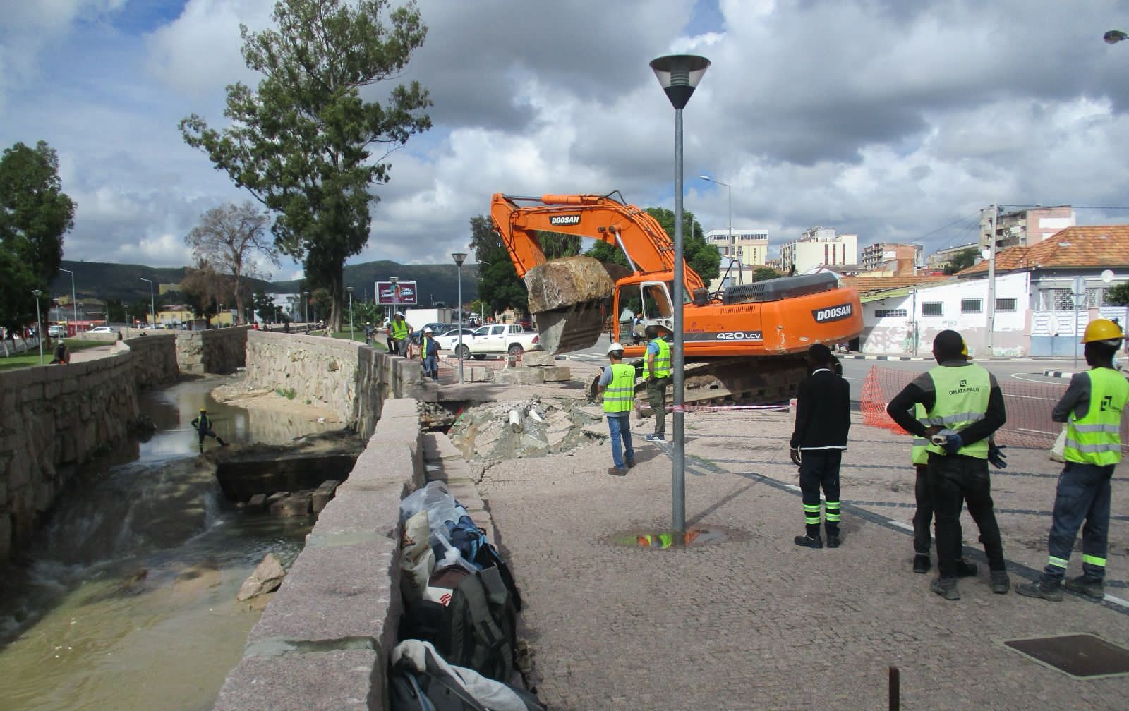 Boulevard do Mukufi recebe reabilitações, após intensas chuvas que assolaram a cidade do Lubango, causando danos materiais significativos na infraestrutura afectada.