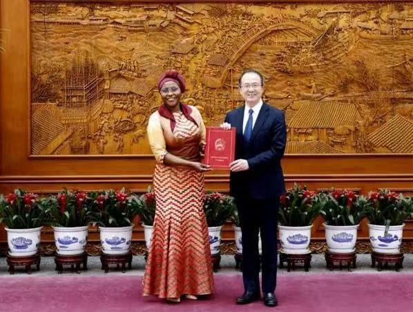 A Embaixadora Extraordinária e Plenipotenciária da República de Angola, na República Popular da China Dalva Maurícia Calombo Ringote Allen, entregou nesta segunda-feira, as Cartas Figuradas ao Ministro Assistente do Ministro dos Negócios Estrangeiros chinês, Hong Lei.