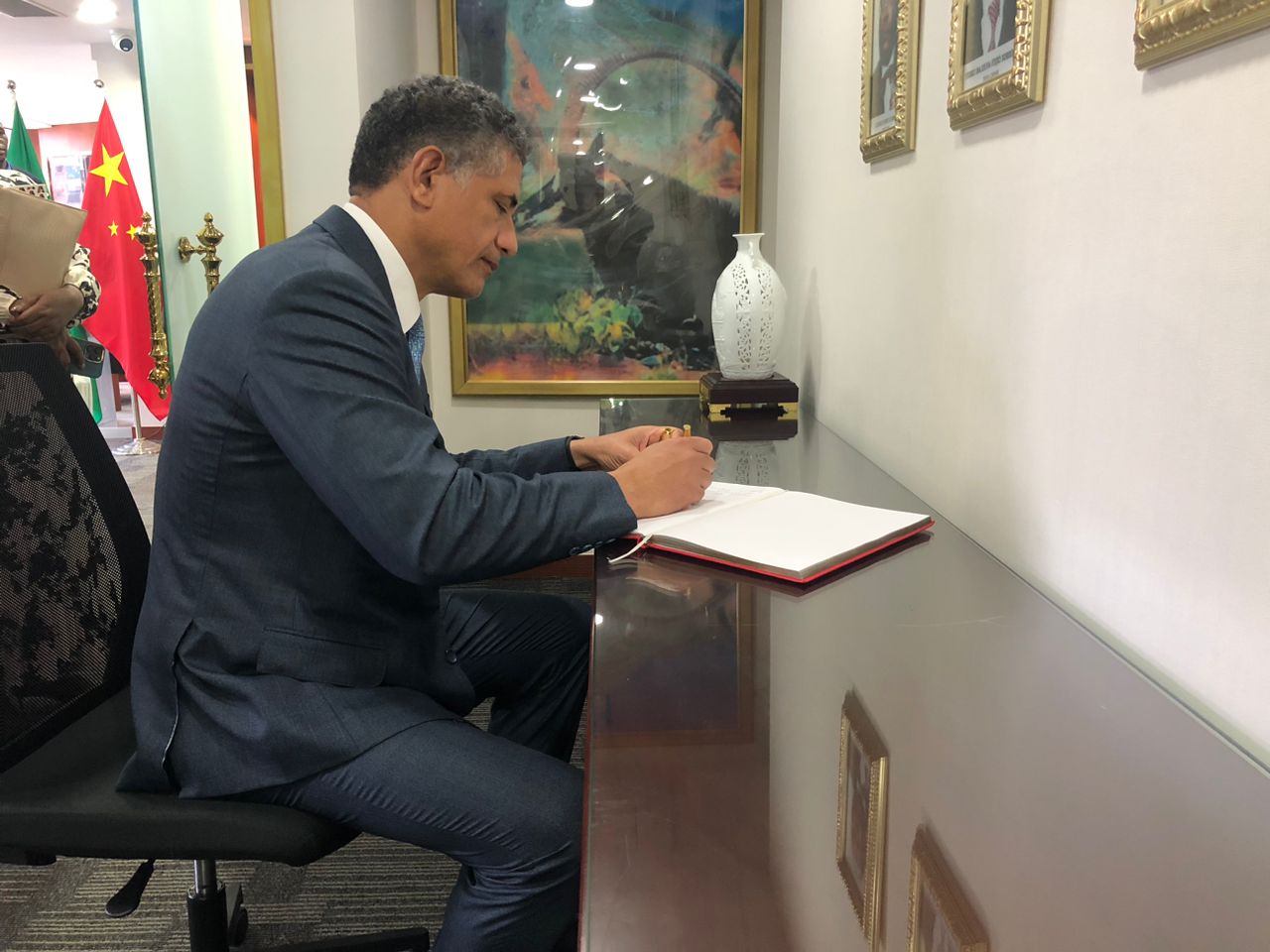 Ainda durante o dia de hoje , no cumprimento da sua agenda a Região Especial de Macau , a pedido do Cônsul Geral da República de Angola na Região Administrativa Especial de Macau, Embaixador Eduardo Velasco Galiano, visitou as instalações do Consulado angolano , tendo deixando a assinatura ao livro de honra .