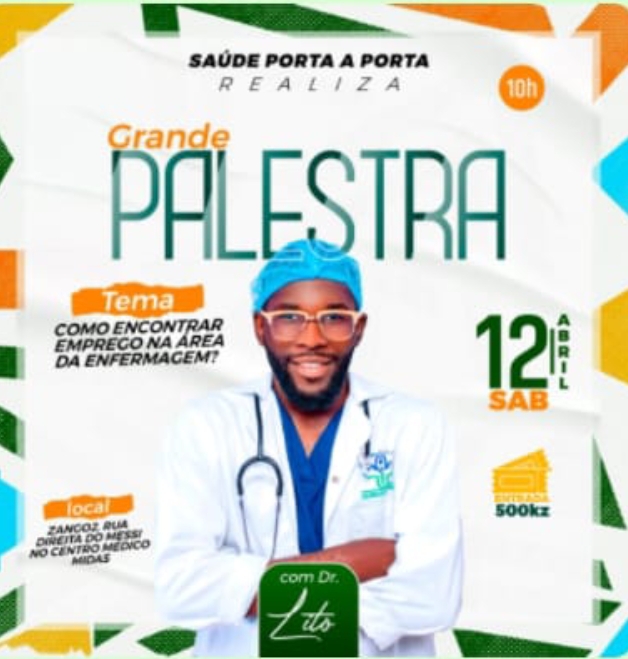 A organização “Saúde Porta a Porta” realiza, sábado, 12 de abril, no Centro Médico Midas, localizado no Zango 2, rua direita do Messi, uma palestra denominada “Como Encontrar Emprego na Área de Enfermagem”.